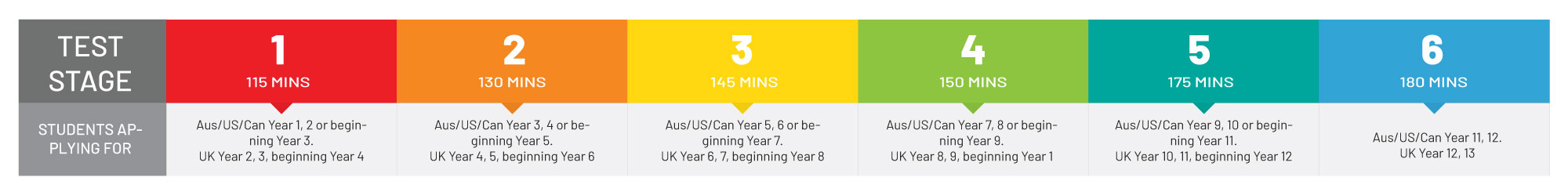 * Please note ages are approximate and students take test equivalent to outcomes for year of study