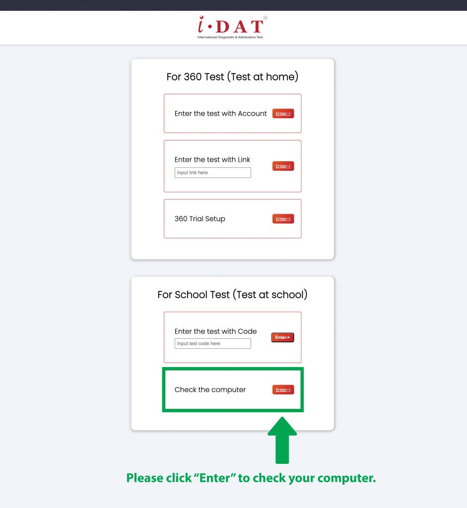- Click to trial the set-up that will match your testing. Click to Trial the In-School test if you are a school or will take the test supervised in School.